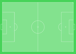 Spielfeldmarkierungen auf einem Fußballfeld sind weiß. Die beiden langen Linien ganz oben und ganz unten nennt man Seitenlinien oder Seitenauslinien. Die beiden Linien ganz links und ganz rechts nennt man Grundlinie, Torlinie oder Torauslinie. Zwischen Seitenlinie und Grundlinie ist ein Eckviertelkreis eingezeichnet, auf dem Schnittpunkt der beiden Linien befindet sich die Eckfahne. Der kleine Kasten hinter den Torauslinien ist das Tor. Der erste kleine Kasten um das Tor herum ist der Fünfmeterraum oder Torraum, der größere Kasten um den Fünfmeterraum ist der Strafraum oder Sechzehner. Der Punkt außerhalb des Fünfmeterraums und innerhalb des Sechzehners ist der Elfmeterpunkt oder Strafstoßpunkt. Der Kreis um den Elfmeterpunkt, der nur außerhalb des Sechzehners sichtbar ist, heißt Strafraumkreis oder 16-Meter-Kreis. Das Spiel wird vertikal durch die Mittellinie getrennt, in dessen Mitte sich der Mittelpunkt oder Anstoßpunkt befindet. Um dieser herum befindet sich der Mittelkreis.